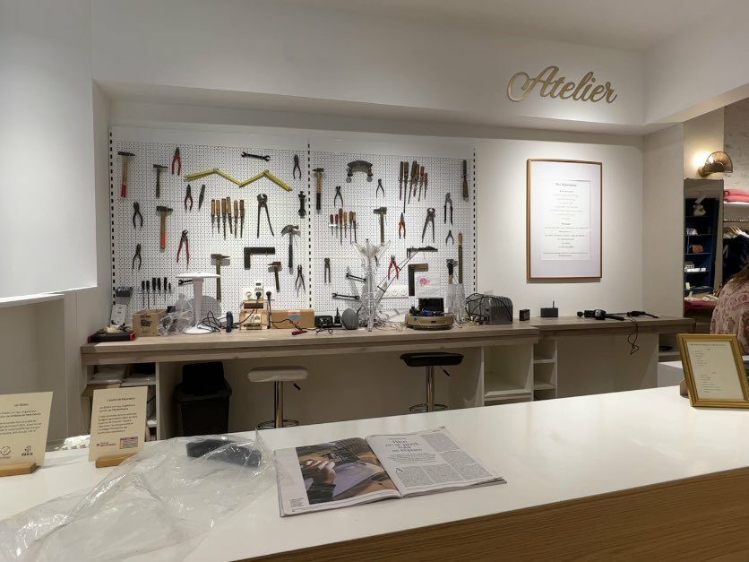 Les Établis est un atelier concept-store dédié à la réparation situé dans le Marais. De vos bijoux à votre sac en cuir, de vos lampes à votre robot ménager, vos objets sont réparés par des artisans qui ont à cœur de prolonger la vie des choses qui vous entourent. En plus du service de réparation, on y trouve un espace de prêt-à-porter féminin éco-responsable et un bistrot avec des plats de saison le midi.